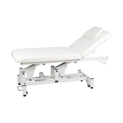 Découvrez notre table de massage à 2 plans dotée d'une structure métallique stable, garantissant une stabilité optimale pendant vos séances de soins ou de massages. Grâce à son moteur intégré et à son bouton latérale, ajustez facilement la hauteur selon vos besoins. Le dossier est réglable grâce à un vérin à gaz pour un confort personnalisé. De plus, le coussin repose-tête amovible avec trou facial ajoute un niveau supplémentaire de confort. Pour une mobilité accrue, cette table est équipée de roulettes escamotables. Son revêtement en PU blanc de qualité supérieure est non seulement élégant mais aussi facile à entretenir, et elle est livrée avec un porte-rouleau pour une utilisation encore plus pratique.