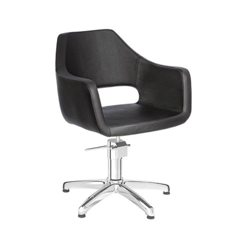 Fekete kárpitozásának köszönhetően ez a szék ideális választás az igényes profi fodrászok számára.