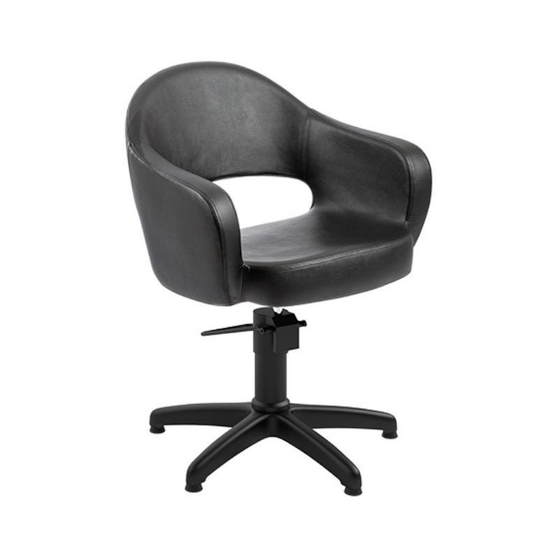 Fekete kárpitozásának köszönhetően ez a szék ideális választás az igényes profi fodrászok számára.