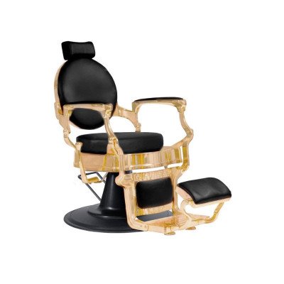 De CROOK Gold Barber Chair met zwarte ronde voet is het pronkstuk van iedere moderne kapperszaak die haar klanten een luxe ervaring wil bieden. Deze stoel combineert verfijning en functionaliteit met een elegant design en robuuste constructie. Daarmee voldoet hij aan de behoeften van de meest veeleisende professionals. Dankzij het aluminium frame met een matzwarte afwerking is deze kappersstoel niet alleen duurzaam, maar ook stijlvol. De bijpassende, zwarte, ronde voet garandeert maximale stabiliteit, ook bij frequente verstellingen.