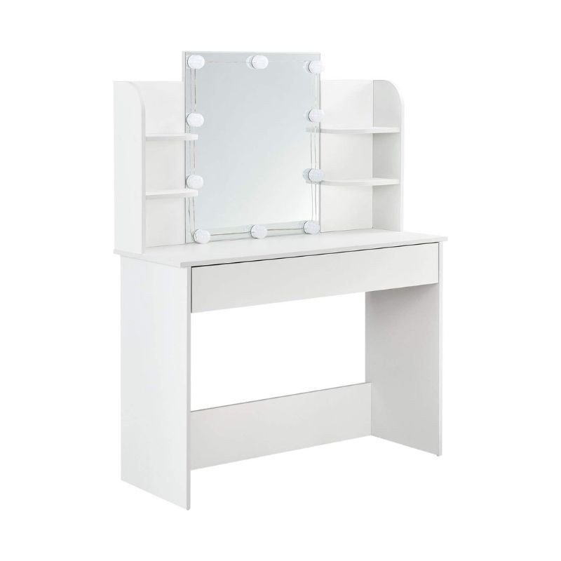 Deze witte houten kaptafel met lades en opbergvakken is eenvoudig te installeren en past perfect in uw schoonheidssalon of kapsalon.