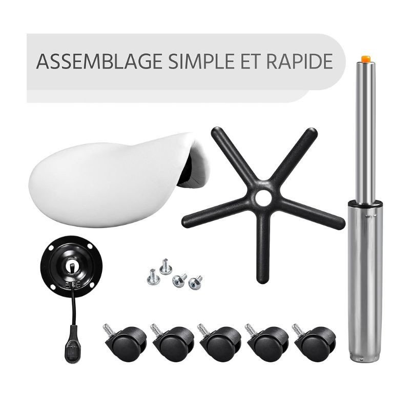Oppdag vår krakk med et flatt, rundt sete, justerbart i høyden takket være en gassløfter for optimal komfort. Aluminiumsbasen er utstyrt med fem doble silikonhjul, noe som sikrer jevn mobilitet og optimal stabilitet.