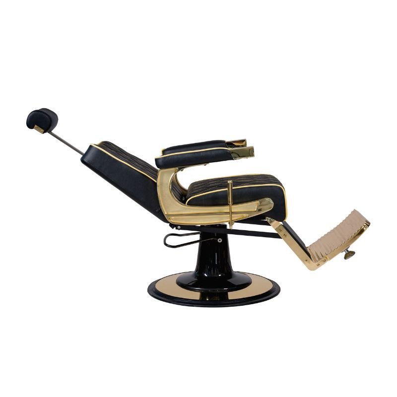 Scaun de frizerie excepțional cu detalii aurii pentru o notă suplimentară de eleganță.