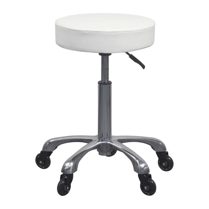 Scaunul de pedichiură HOLY este un model elegant din lemn lăcuit alb, cu șezut din PU și 2 sertare integrate, ideal pentru a vă păstra materialele organizate și la îndemână în salonul de înfrumusețare sau spa.
